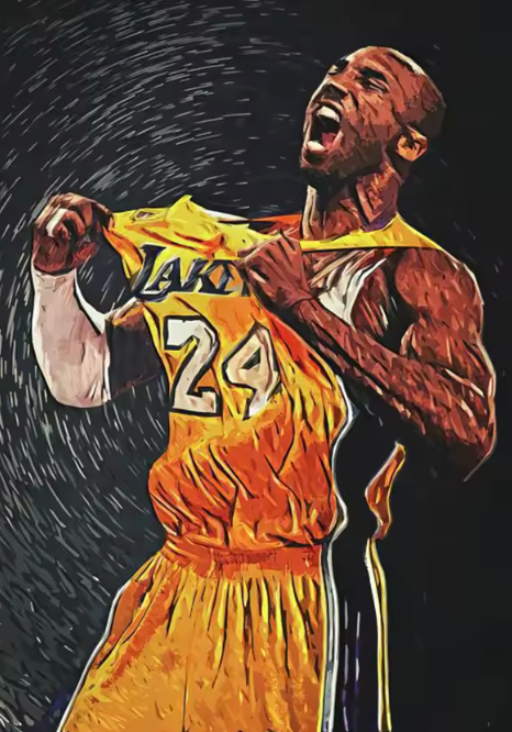 Celebrate the indomitable spirit of Kobe Bryant with this striking artwork that captures the heart of a legend.