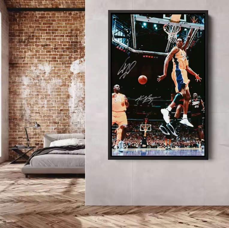 Own a piece of basketball history with this incredible signed action shot featuring Kobe Bryant, Shaquille O'Neal, Lakers greats in their prime.