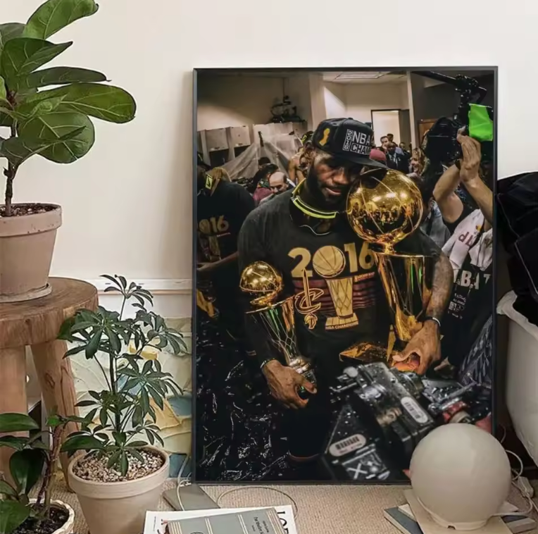 Relive the glory of 2016 LeBron James with this captivating framed poster showcasing one of the most iconic championships. Perfect for basketball fans, this artwork exudes triumph and determination, making it a must-have centerpiece for your home or office decor.